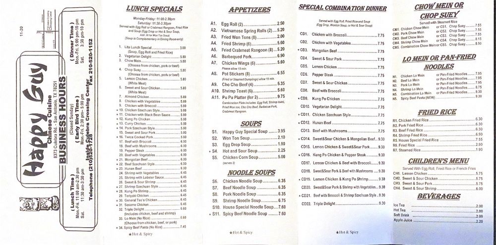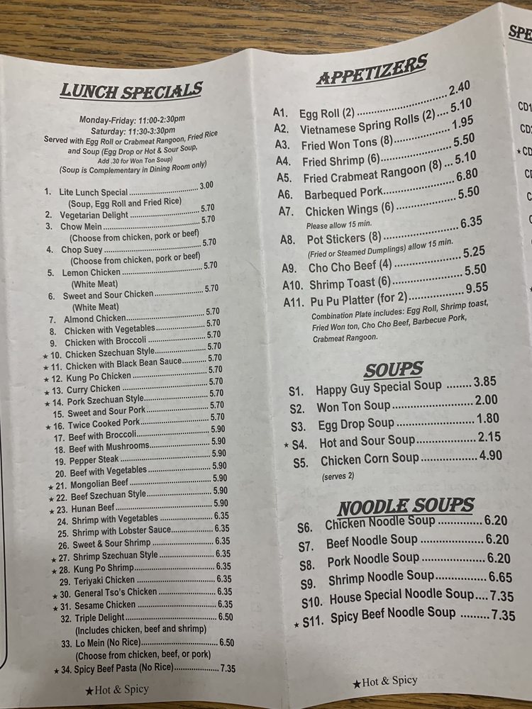 Happy Guy Chinese Cuisine is a Chinese restaurant located at 8373 Culebra Rd in San Antonio, TX. Offering a range of amenities, including takeout, reservations, credit card acceptance, and more, this establishment is perfect for various dining occasions. With a casual and quiet atmosphere, Happy Guy is suitable for groups, families with children, and individuals looking for a satisfying lunch or dinner option. The menu features a variety of traditional Chinese dishes served with attentive waiter service. Whether you're dining in or taking out, you can enjoy the flavorful cuisine in a peaceful setting. Don't miss the opportunity to try their delicious offerings and experience the warm hospitality of Happy Guy Chinese Cuisine.